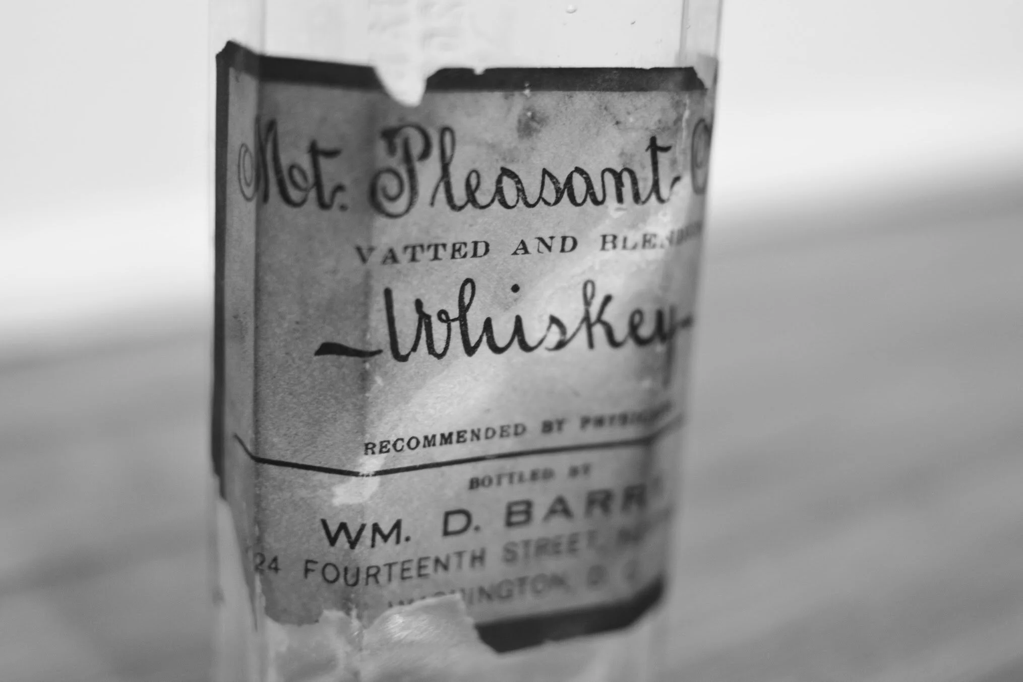 ABOVE: Picture of the original Mt. Pleasant Club Whiskey bottle found hidden in the roof of a row house on 19th St. NW in Mt. Pleasant, Washington, DC.